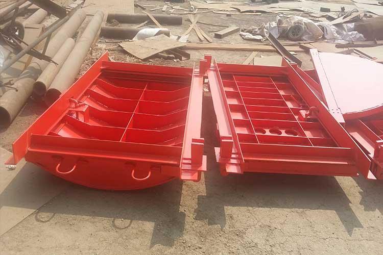 抗沖擊波活門與密閉門組合使用,安裝在炸藥庫兩邊配合使用,通風(fēng)活門組分為3組,使用時可根據(jù)井下材料庫需要風(fēng)量和總回風(fēng)道負(fù)壓值,確定通風(fēng)活門組數(shù),抗沖擊超壓能力為2500Kp??箾_擊波活門用于井下爆炸材料庫和爆炸材料發(fā)放硐室,起隔離作用阻止爆炸沖擊波及爆炸產(chǎn)生的火焰、有毒氣體向外部巷道擴散。